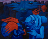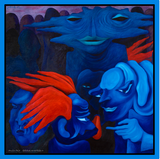 ARRAK MEETING IN BLUE GALAXY 1977 silk pocket square is based on artwork of a famous Estonian painter Jüri Arrak – Meeting in the blue galaxy (1977).