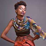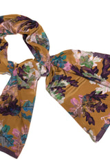 OAK LEAVES GOLD silk shawl is inspired by golden autumn colors and hues. Perfect for tying around neck or wearing it sexy on your head.