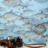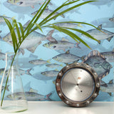Dynamic and spirited, yet calming Blue Shoal of Fish pattern is eye-catching and whimsical. For all the fishermen out there!