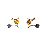 The graceful gold plated silver lines - topped with black hematite pearls - polished from the top and mattified from the sides, signify the swift zigzag movement through the air.