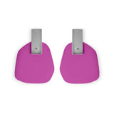 The shapes of these earrings reminds of flower petals in all kind of colors. Designer has combined them with a silver strip, to give them some special and modern touch.