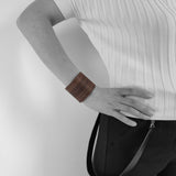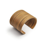 Made of several layers of plywood. Hand-glued, polished and finished with natural oil it gives a sense of quality. The bracelets are very light, very flexible, look great. The bracelet is oval, a real eye-catcher, every piece is unique. Grain and colour of the wood will vary naturally from the sample shown.