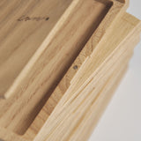 Approximately 15 business cards can be stored. Inlaid with magnets on the lid.