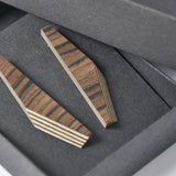 These flat, plywood, stud earrings are handmade from beautiful plywood; which is a combination of light and dark layers of wood. One side of the earring is cut at 45 degrees and exhibits the charming structure of the plywood. Earrings are made using a special technology of laminating, hand-glued, polished and waxed with natural oil-wax which gives a sense of luxury and quality. Since wood grain is variable, your pair will not look exactly as the ones on picture.