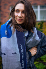 ARRAK “VIEWERS” (1970) IN AUBERGINE GREY is a two-sided unisex wool muffler for the autumn-winter. The muffler’s print is based on artwork of a famous Estonian painter Jüri Arrak – Viewers (1970).