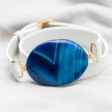 Blue agate and double strap leather make a powerful statement – wether worn on its own or mixed with NVbyK K.I.S.S. bracelets!