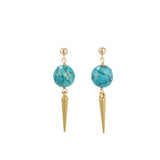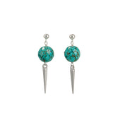 These earrings have a 12 mm turquoise bead combined with a silver or gold coloured spike and silver 925 or gold filled closures.