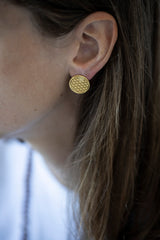 Responsibly made 3D printed ethical 925 silver and gold covered silver stud earrings.