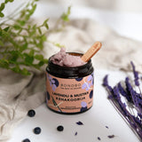 Koostis: Kookosrasv, shea-või, roosuhkur (rafineerimata), lavendli eeterlik õli, mustika pulber ja E-vitamiin.