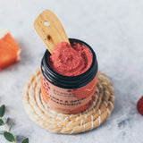Kehakoorijale omase tekstuuriga, mis on saadud kasutades rafineerimata roosuhkrut, puhastab ta põhjalikult su nahka ja katab selle siidise, niisutava ja toitva kihiga. Ja sa lõhnad nagu värske greip!