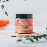 Koostis: Kookosrasv, roosuhkur (rafineerimata), terapeutiline greibi eeterlik õli, vaarikapulber ja E-vitamiin.