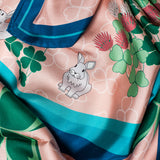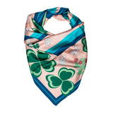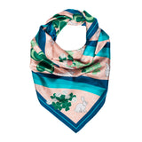 Silk scarf with blueberries and long-tailed tits on the black background. Designed in Estonia.