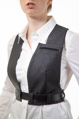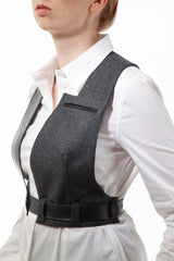 Tekstiilist vesti osa puhastamiseks eemalda kõik nahast rihmad. Nahast detaile võib puhastada niiske pehme lapiga.