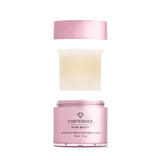 Selle kreemi teevad eriliseks 2 faktorit – ülipõnevad aktiivained ja veevaba koostis. Veevaba koostis tähendab seda, et kreemile ei ole lisatud vett. Vesi on kreemis küll olemas, aga aktiivainete osana. Põnev, eks? Selle kreemi põhikomponent on aloe vera geel, millele sekundeerivad mangovõi ja skvalaan. Väga rahustavad, naha kaitsebarjääri üles ehitavad ja toitvad komponendid. Edasi läheb ülihuvitavaks ? Kapseldatud vasepeptiidid on tõeliselt uuenduslik ja mitmetoimeline koostisosa. Peptiidid on nahahooldustoodete võlurid, mis teevad enamus aktiivainetele oma toimekusega silmad ette. Me võime mõelda peptiididest kui sõnumitoojatest, mis annavad erinevatele rakkudele ja kiududele teada mida ja kuidas teha. Peptiide on mitmeid erinevaid, meie oleme valinud vasepeptiidid, mis vastutavad naha üleüldise heaolu eest ning annavad väga tugeva pinguldava, jooni ning kortsukesi siluva ja igakülgse vananemisvastase mõju. Järgmine grupp aktiivaineid on 3 erineva molekulmassiga hüaluroonhapped, uuenduslik taimset päritolu siidigeel ja hüaluroonhappe polümeer, mis aitavad hoida niiskust naha sees, tagavad sileda pinna ja kaitsevad õhusaaste eest. 5% niatsiinamiidi kaitseb sinise ekraanivalguse eest, vähendab vistrike teket, leevendab naha punetust, muudab jume klaariks ja ühtlaseks. Veel tasub esile tuua 5D sarjast tuttavat taimset tüvirakuekstrakti, mis tänu bacillus natto`le käitub naha mikrobioomi toetajana (probiootikum) tagades naha parema tervise, toonuse ja ühtlase jume.