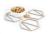 Kuusnurkseid detaile saab kasutada serveerimiseks, kuuma-aluseks ja lauadekoratsiooniks.