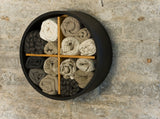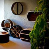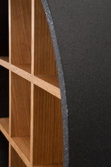 Seinariiulite kesta valmistamisel on taaskasutatud tööstusjäägina tekkivat papptoru, mis on kaetud polüuretaaniga (tugev ja veekindel kattematerjal). Riiulite sisu on viimistletud tammespooni ja õliga.
