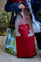 ARRAK “VAATAJAD” (1970) IN RED GREY on kahepoolne unisex sügis-talvine villane sall. Salli muster põhineb tuntud Eesti maalikunstniku Jüri Arraku teosel – Vaatajad (1970).