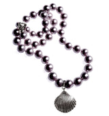 Klassikaliselt helendav kaelakee koosneb ümaratest tumedatest pärlitest ja merekarbikujulisest hõbedast ripatsist. Pärlid on AAA+ (kõrge kvaliteediga, kuid väikeste ebakorrapärasustega) naturaalsed mageveepärlid.