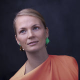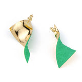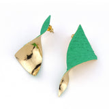 The collection is made of silver and the pieces are either gold-plated or plated with the special ceramic coating. Each piece is transformed from a single piece of metal into an elegant twisted form using only a hammer and stake. The surface is covered with the tinted structure paste.