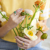 BLOSSOM kullatud lillenupu sõrmus lasuriidiga sobib hästi üksi kandmiseks, kuid seda võib ka kombineerida teiste BLOSSOM kollektsiooni sõrmustega, et luua pilkupüüdev lillekimbu mulje. Eriti hästi sobivad selle sõrmusega kimbu loomiseks sensuaalsed suitsukvartsid ja ametüstid, aga ka alati kaunid pärlid ning rõõmus munakollane merevaik.