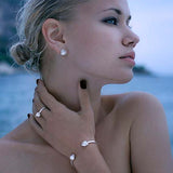 Metallidest on kasutatud hüpoallergeense valge roodiumiga aketud hõbedat ning 14K roosa kullaga kaetud hõbedat. Kuna pärlid on looduslikud, siis võib pärlie toon vastavalt ehtele veidi varieeruda. Oluline on see, et valime oma ehetesse vaid kõige kaunima tooni ning kumaga looduslikud pärlid.