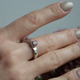 Sellel hõbedast valmistatud sõrmusel on keskosast väljapoole jääv pirnikujuline granaat. Sõrmust saab kanda eraldi või komplektina mõne lameda profiiliga sõrmusega.