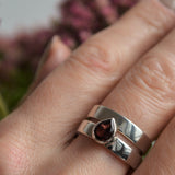 Sellel hõbedast valmistatud sõrmusel on keskosast väljapoole jääv pirnikujuline granaat. Sõrmust saab kanda eraldi või komplektina mõne lameda profiiliga sõrmusega.