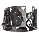 Ehteseerias on kasutatud oksüdeeritud hõbeda kõrvale märgilisi taaskasutust leidnud puidust malendeid ja ehtesse sobivaid kalliskive. Ehted on valminud käsitööna.