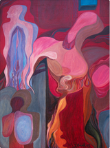 ARRAK KOMPOSITSIOON FIGUURIDEGA 1967 siidirätik on tuntud Eesti kunstniku Jüri Arraku algusperioodi purpur-lillakates toonides loodud maal naisfiguuridest.