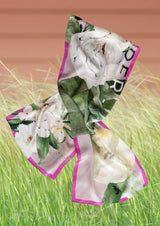 PEONY SHAWLLIA siidisalli disainis MIURIO stuudio spetsiaalselt ALEXANDERLING moemaja 2023. aasta kevad-suve kollektsiooni “Soft breeze” jaoks. Valged õitsevad pojengid on suve sümbolid. Pidulik sall elegantsete pojengidega beeži-fuksia taustal. Midagi ülinaiselikku ja romantilist.