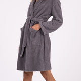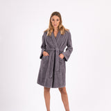 Kimonolõikeline sallkraega hommikumantel. Esiosal on kaks pealeõmmeldud taskut, mille peal on tikitud k-kujuline tikand. Hommikumantel on seotav vööga. Vöö on seljaosale kinnitatud.