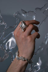 Silmapaistev kõvera vormiga käevõru. Ehe on valminud käsitööna iidset Jaapani ehtetehnikat Mitsuro Hikime't kasutades.