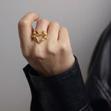 Ehte dünaamiline vorm sünnib käsitööna põimides klassikalisi kullassepatehnikaid ja tuld - esmalt tegutseb disainer skulptorina ning seejärel töötleb loodud vahast ehtemudelit leegiga.