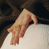 Lai, kuid väga õhuline unisex sõrmus, millel on Melt ehtekollektsioonile sulava voolava metalli tekstuur.