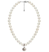 Klassikaliselt helendav kaelakee koosneb ümaratest valgetest pärlitest ja merekarbikujulisest hõbedast ripatsist. Meie pärlid on AAA+ (kõrge kvaliteediga, kuid väikeste ebakorrapärasustega) naturaalsed mageveepärlid.