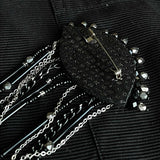 Materjalid: tagaküljel naturaalne nahk, klaashelmed, roostevabast terasest ketid.