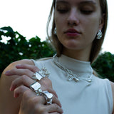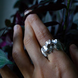 Kollektsioon Erosiooni sõrmused jäädvustavad loomuliku transformatsiooni ilu. Sõrmused on kujundatud kihilise, ebaühtlase tekstuuriga, mis peegeldab järkjärgulist kulumist, mida põhjustavad sellised elemendid nagu tuul ja vesi.