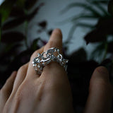 Kollektsioon Erosiooni sõrmused jäädvustavad loomuliku transformatsiooni ilu. Sõrmused on kujundatud kihilise, ebaühtlase tekstuuriga, mis peegeldab järkjärgulist kulumist, mida põhjustavad sellised elemendid nagu tuul ja vesi.